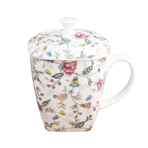 大容量骨瓷茶杯带盖家用个人陶瓷