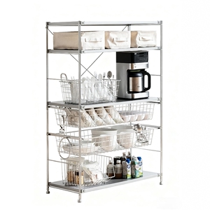 钢骨咖啡机置物架角落靠墙一体小柜子落地多层收纳储物架金属货架