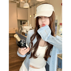 曾小咸蓝色镂空防晒针织开 衫女夏季薄款吊带外搭罩衫短款外套上