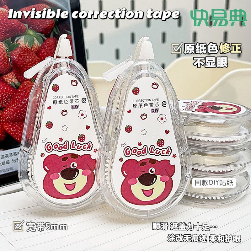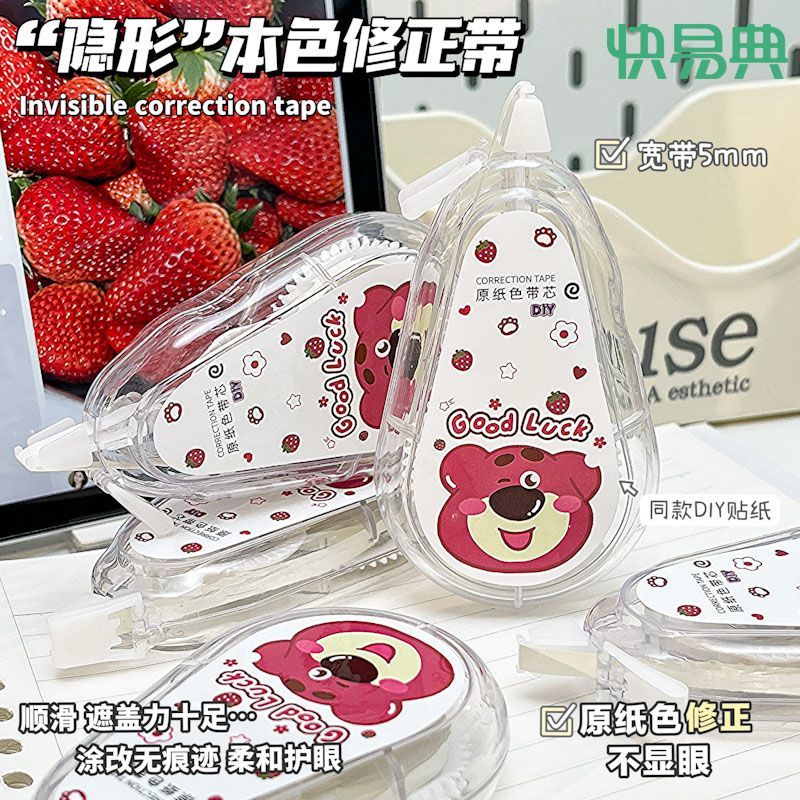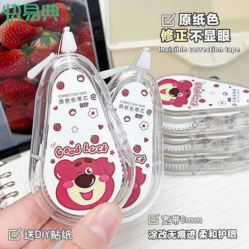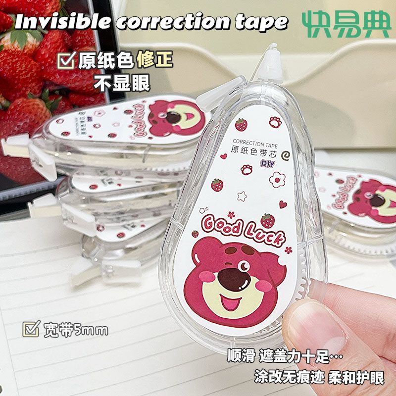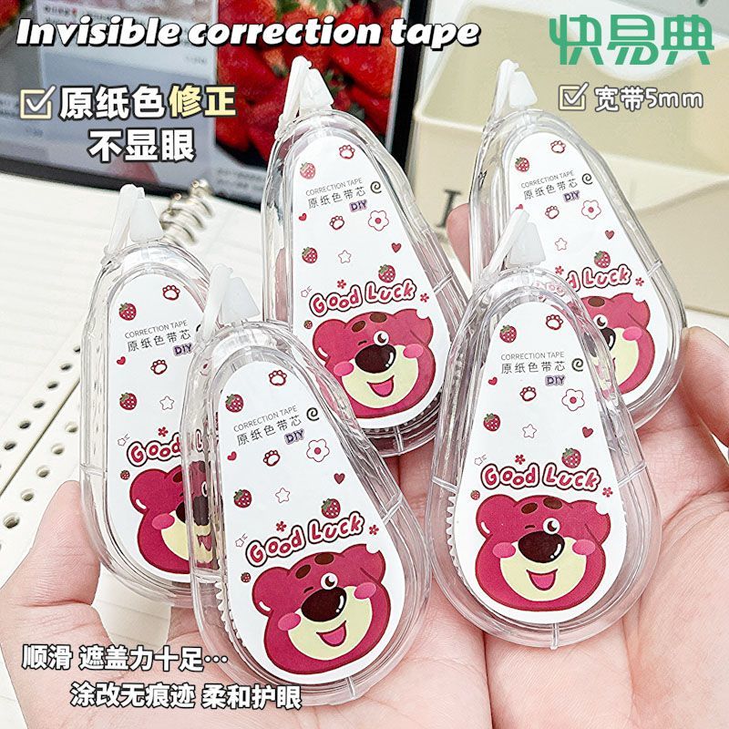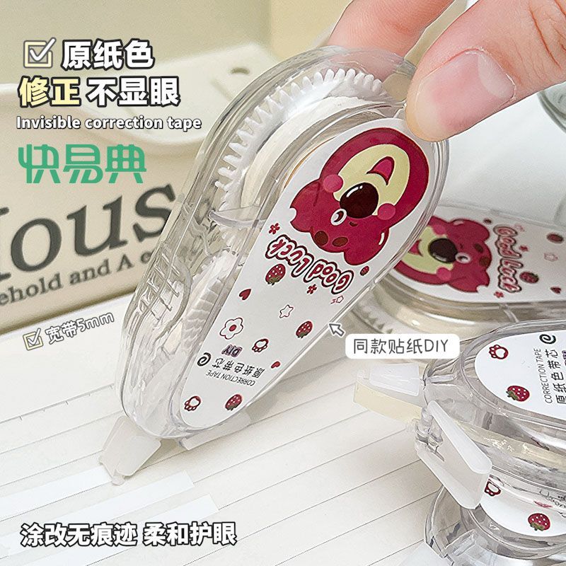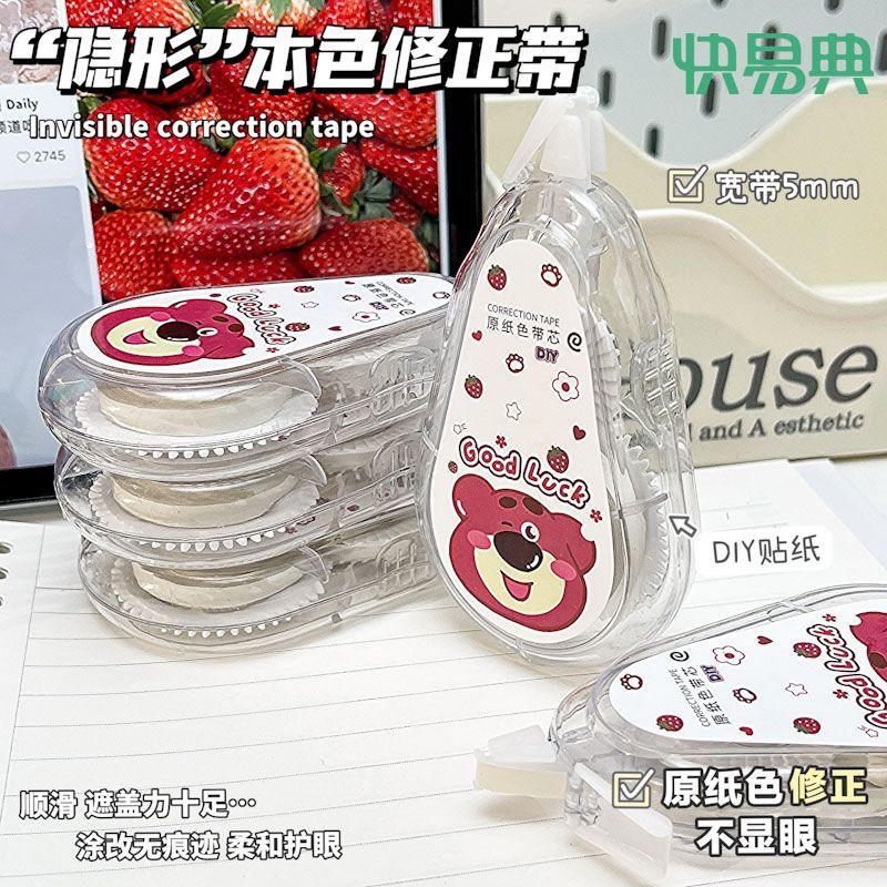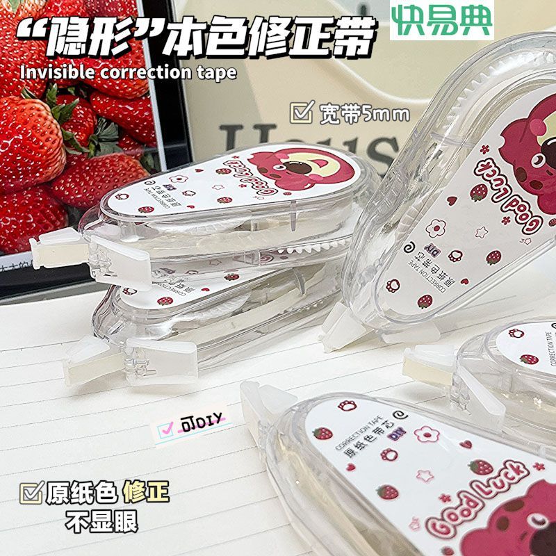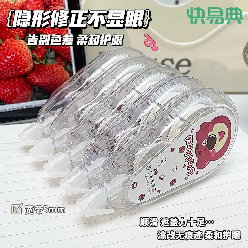 快易典大容量静音隐形修正带原纸色草莓涂改带幸运熊米黄带芯护眼