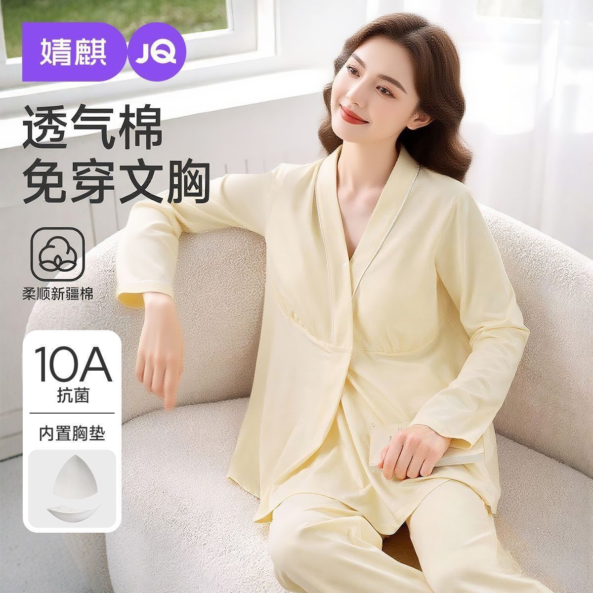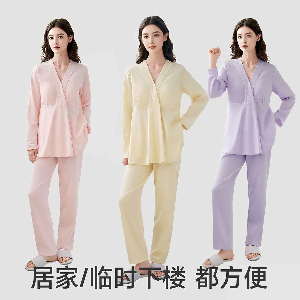 婧麒带胸垫月子服纯棉产后秋冬孕妇睡衣产后哺乳产妇家居服套装女