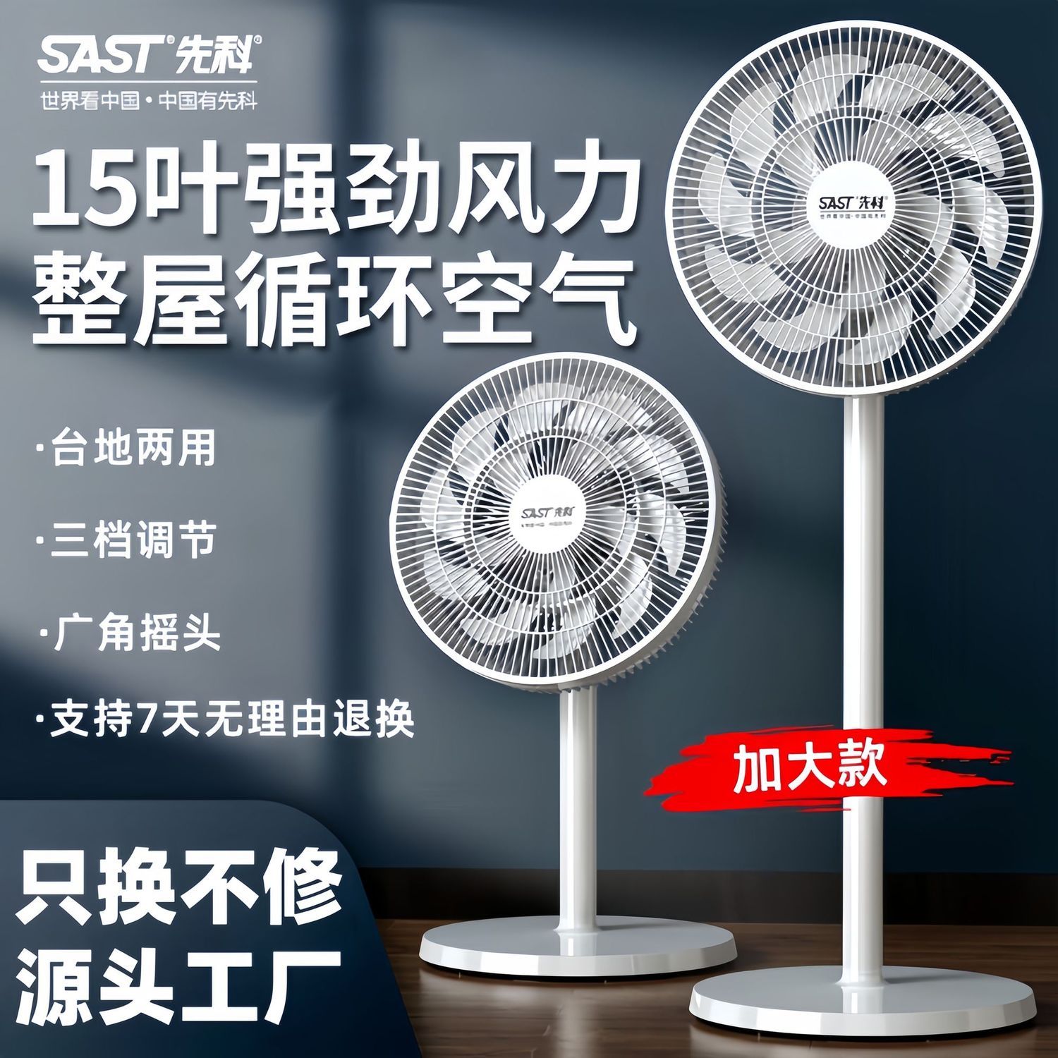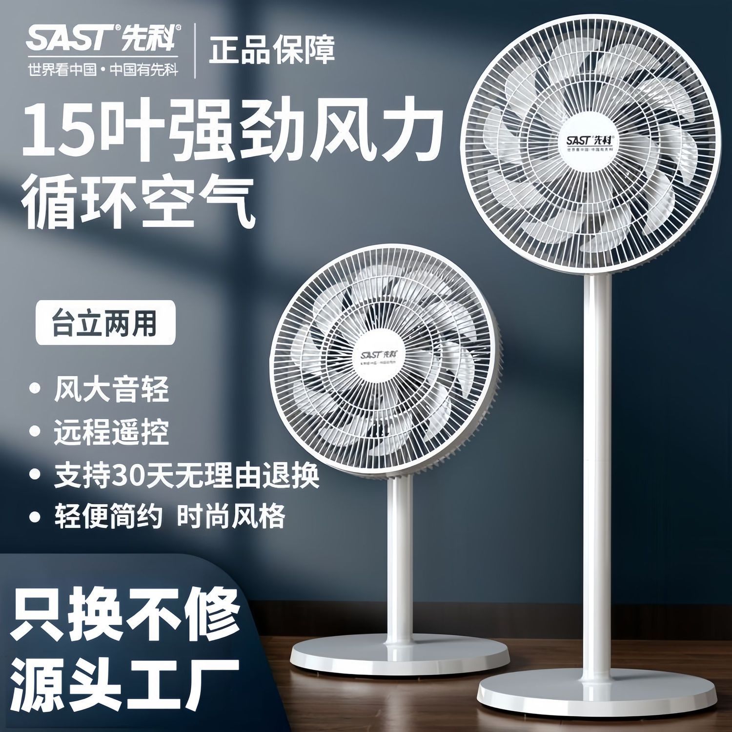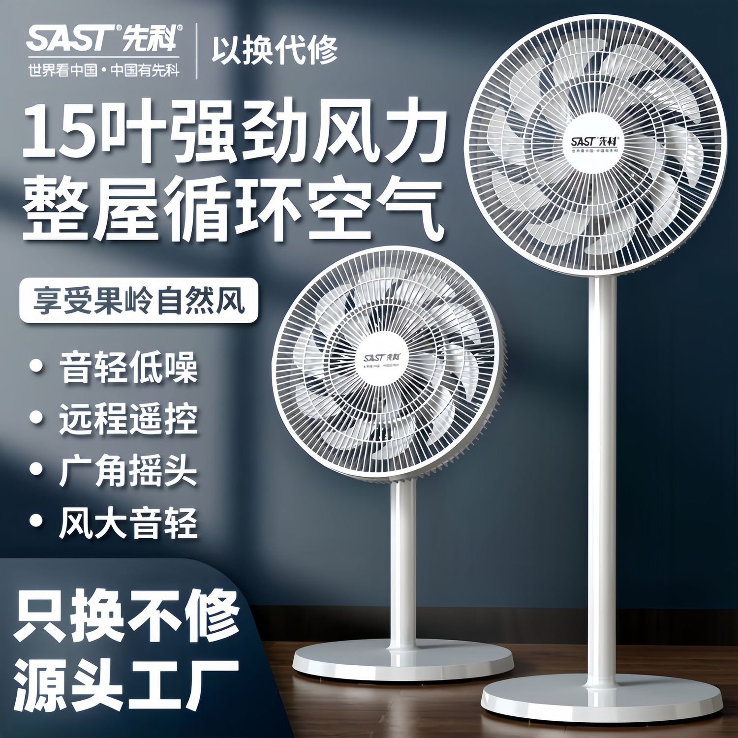 先科电风扇落地式家用节能宿舍立式大风力静音遥控电扇卧室摇头扇