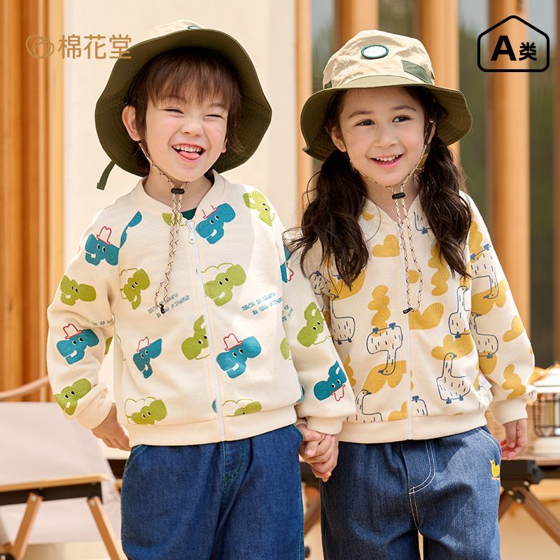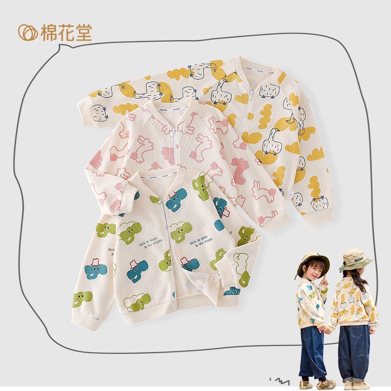 棉花堂儿童棒球外套针织开衫秋季印花宝宝卡通山野户外百搭棒球服