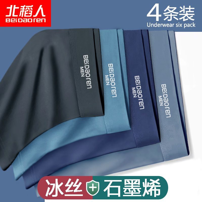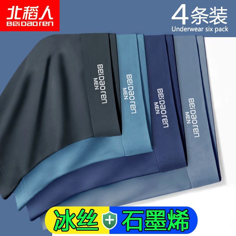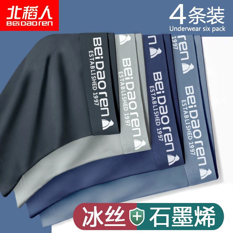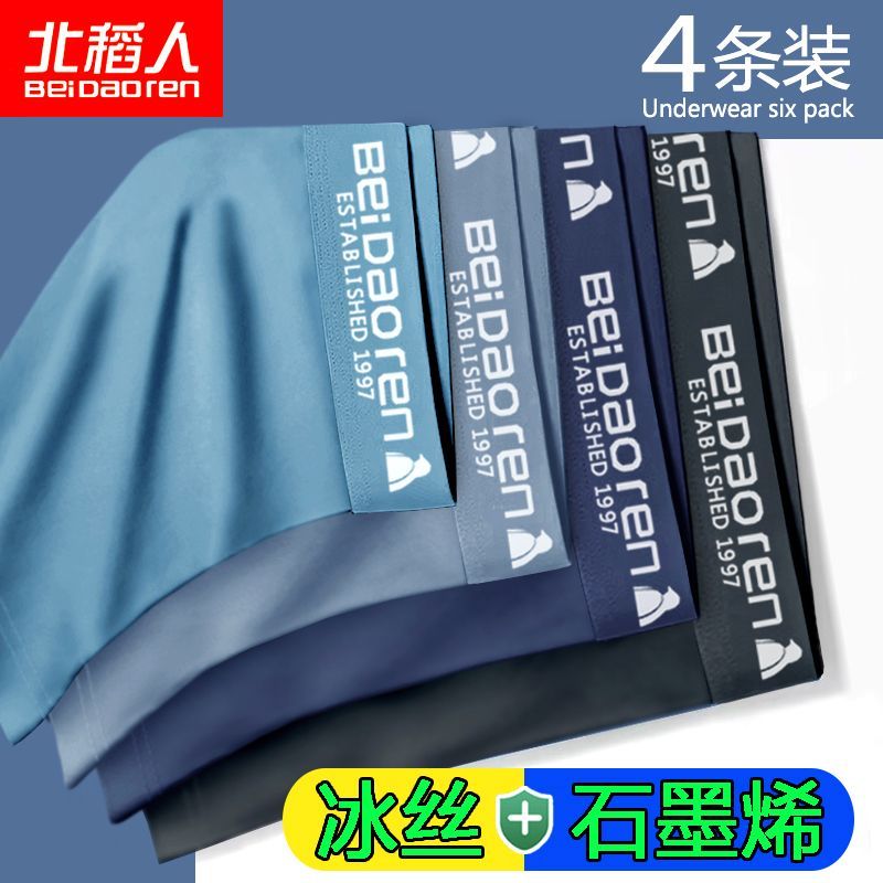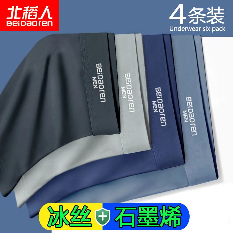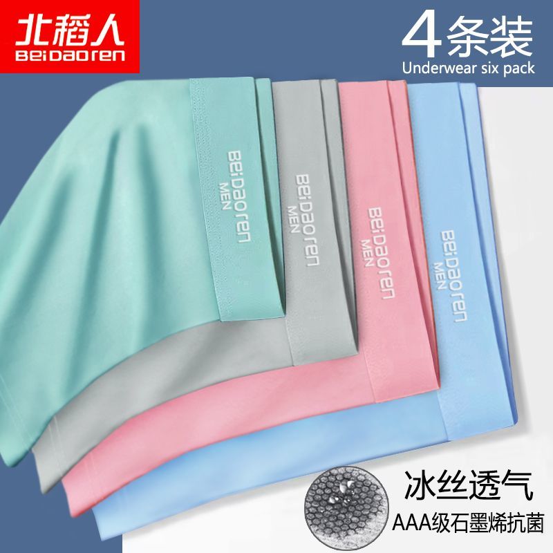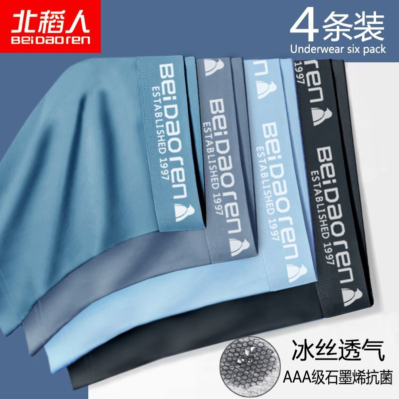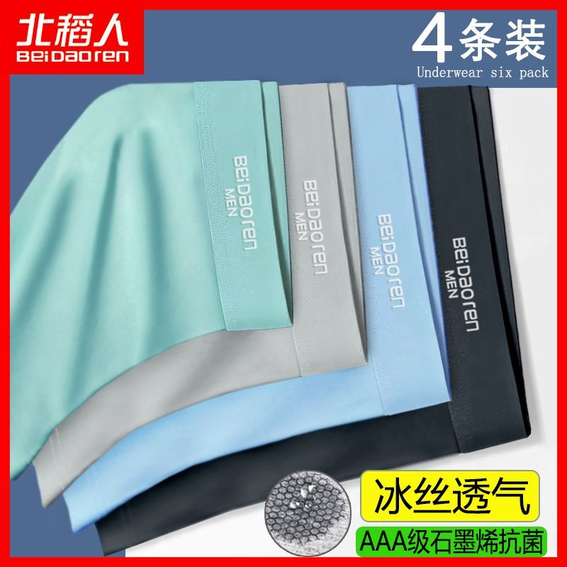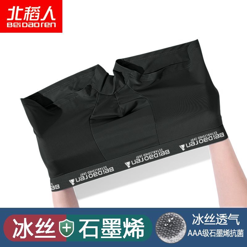 北稻人男士内裤男冰丝透气抗菌轻薄款夏季平四角短裤青年裤衩男生