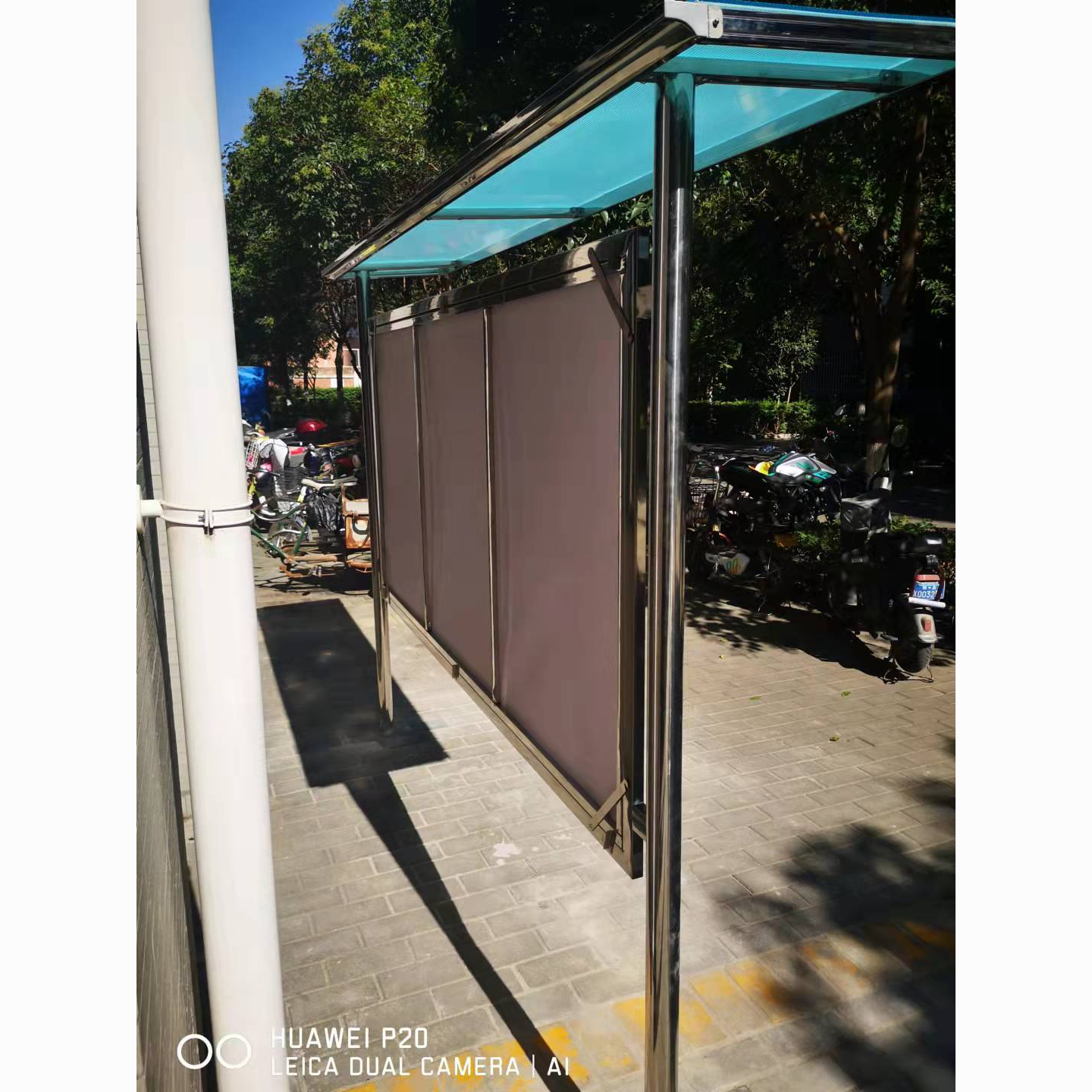 不锈钢宣传栏液压开启带雨棚可开启宣传栏挂墙式公示栏工地宣传栏
