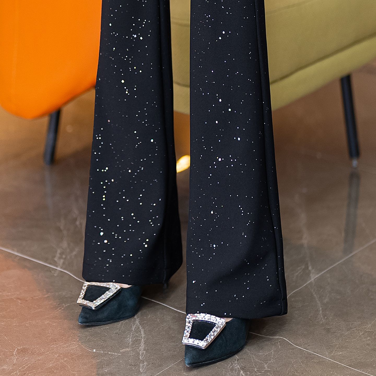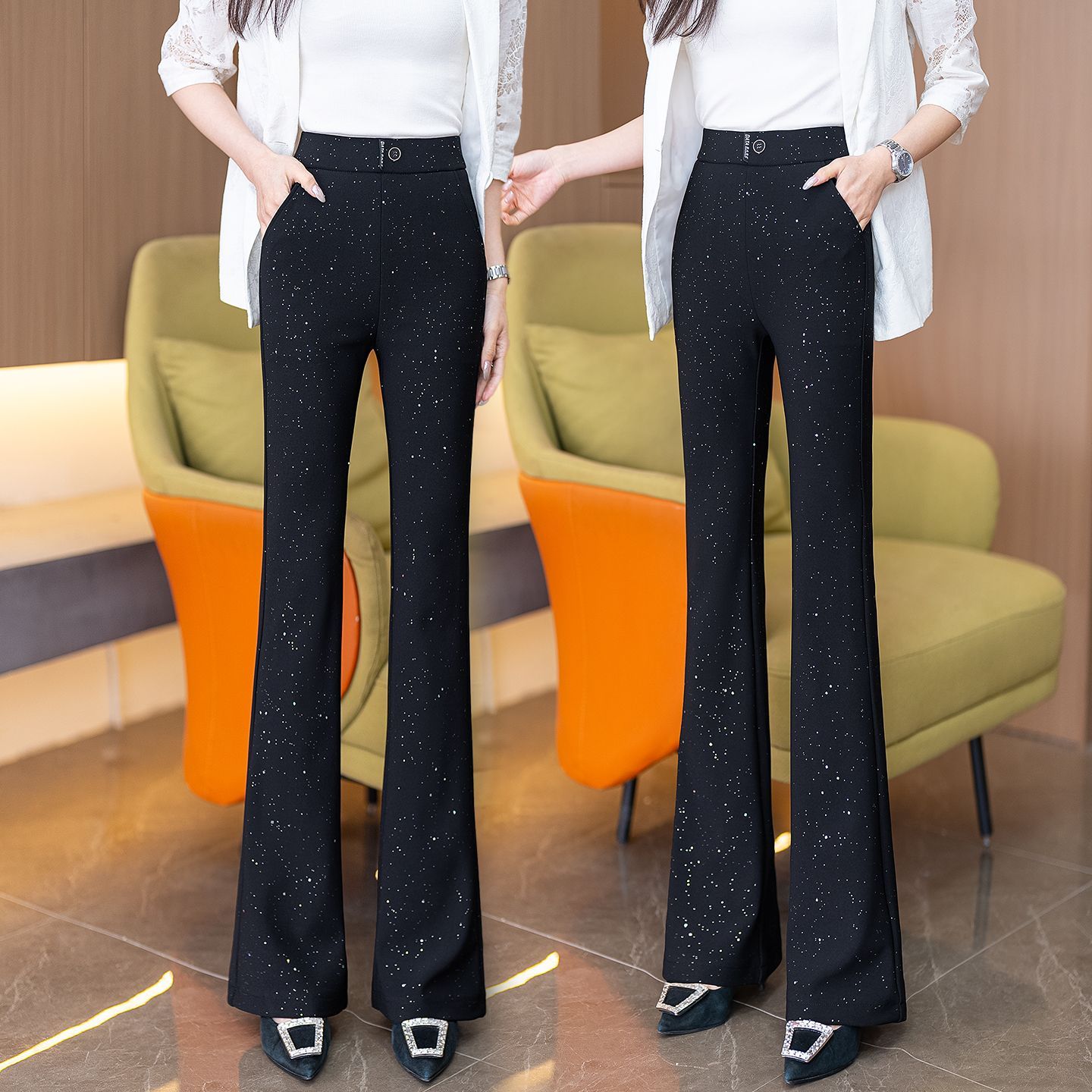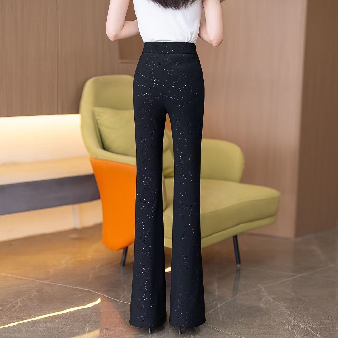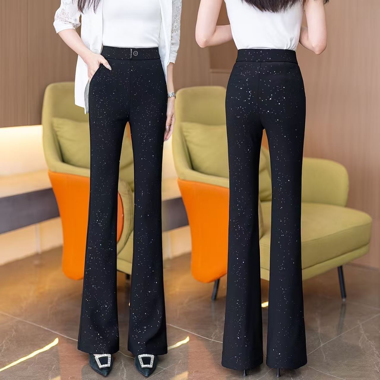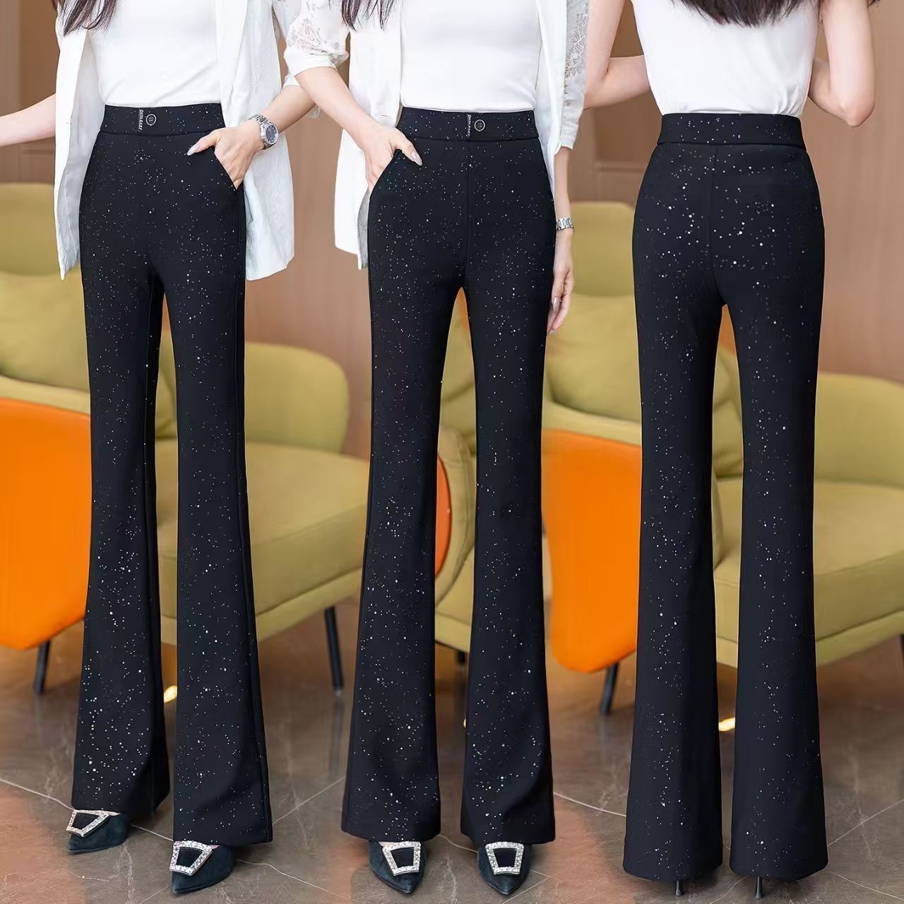 星空闪粉微喇裤女2026春季新款松紧腰显瘦百搭裤子女满天星裤子
