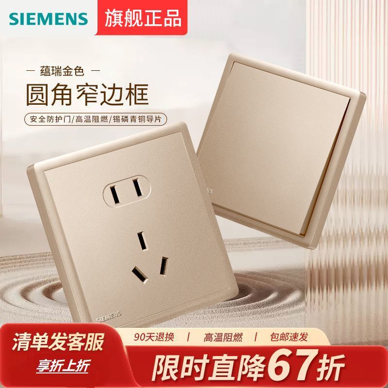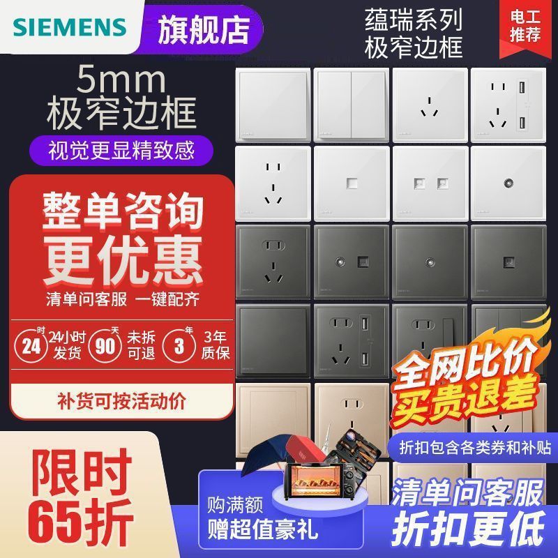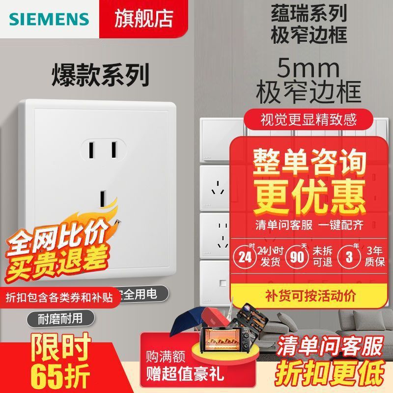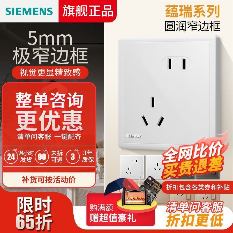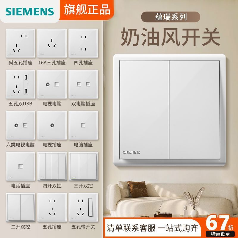西门子开关插座面板蕴瑞经济款家用86型usb五孔带开16A三孔带开关