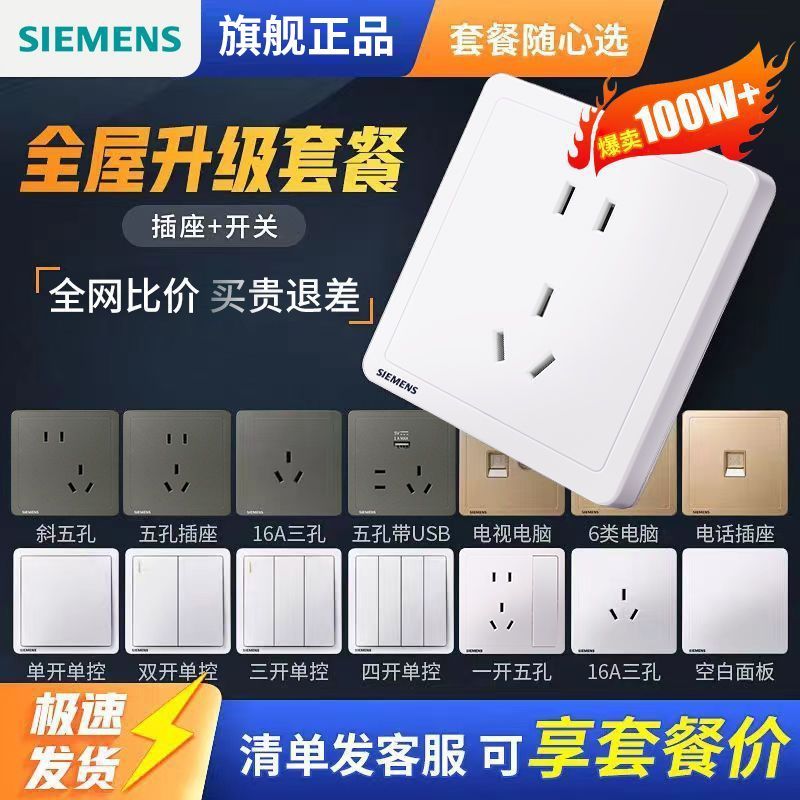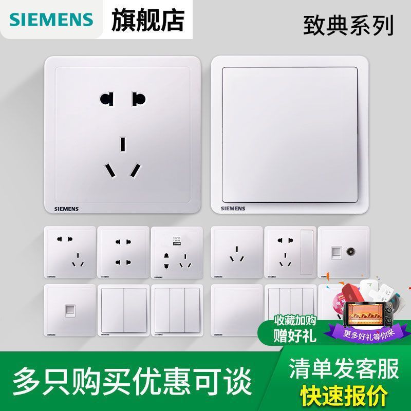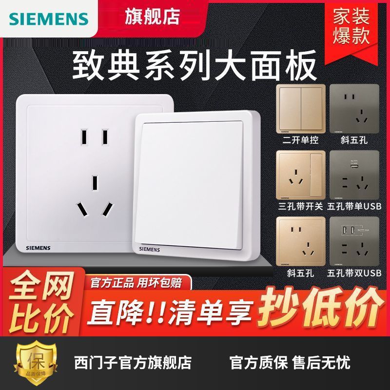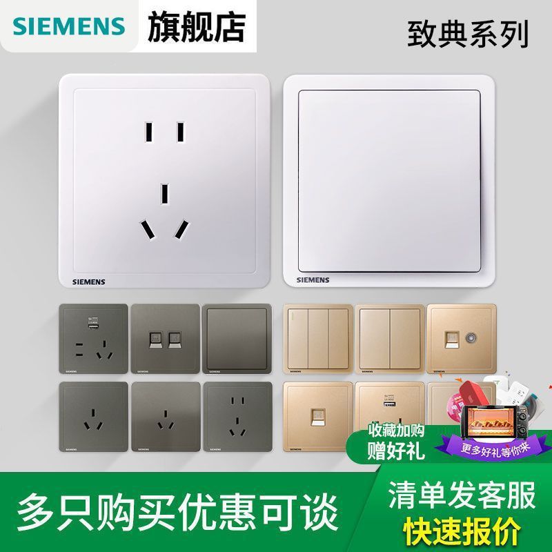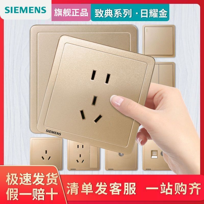 【官方旗舰】西门子开关插座面板金色热销86型家用16a三孔带开关