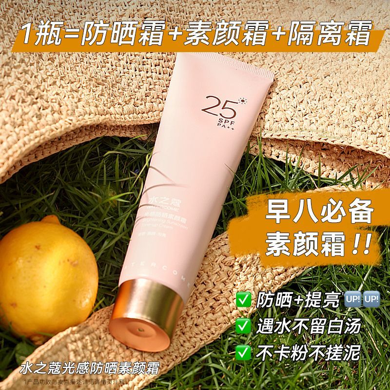 水之蔻防晒霜素颜霜脸部女生必备光感水润裸妆身体素颜霜防晒霜