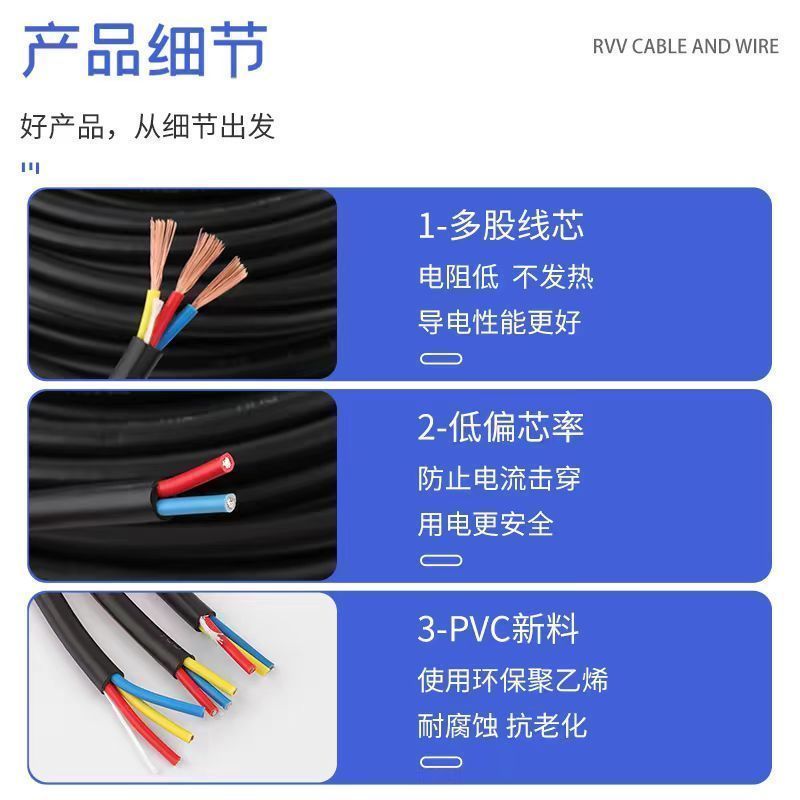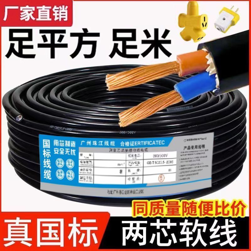 家用国标电缆线双芯1.5 2.5 4 6平工地户外软电线防水防冻护套线