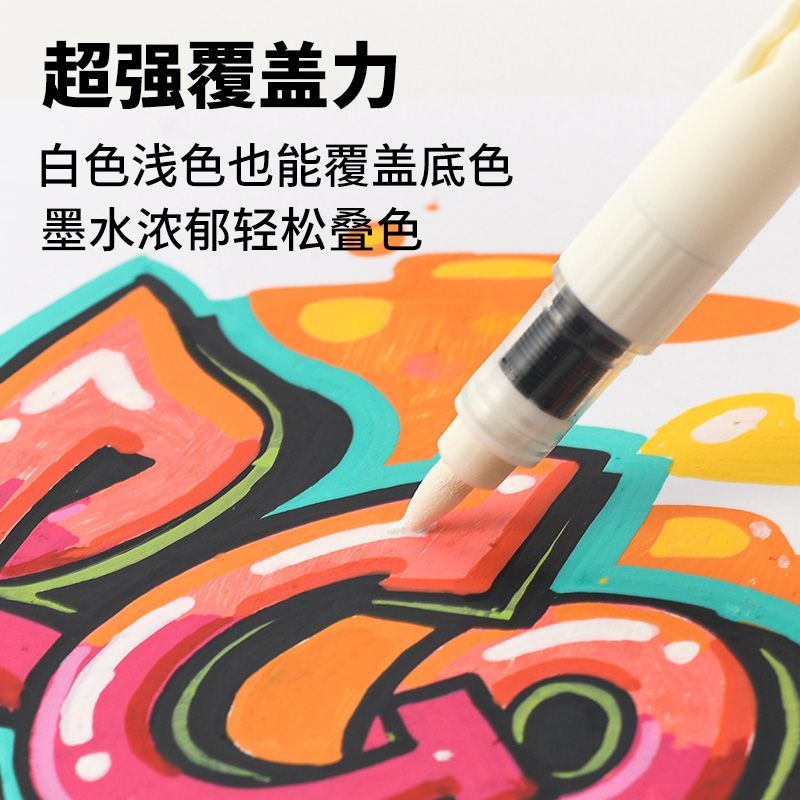 马可直液式丙烯马克笔大墨续航王防水不透色咕卡正品彩笔美术专用