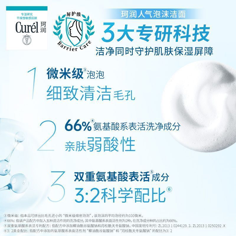 Curel珂润润浸保湿洁颜泡沫150ml绵密泡沫温和学生党用洗面奶