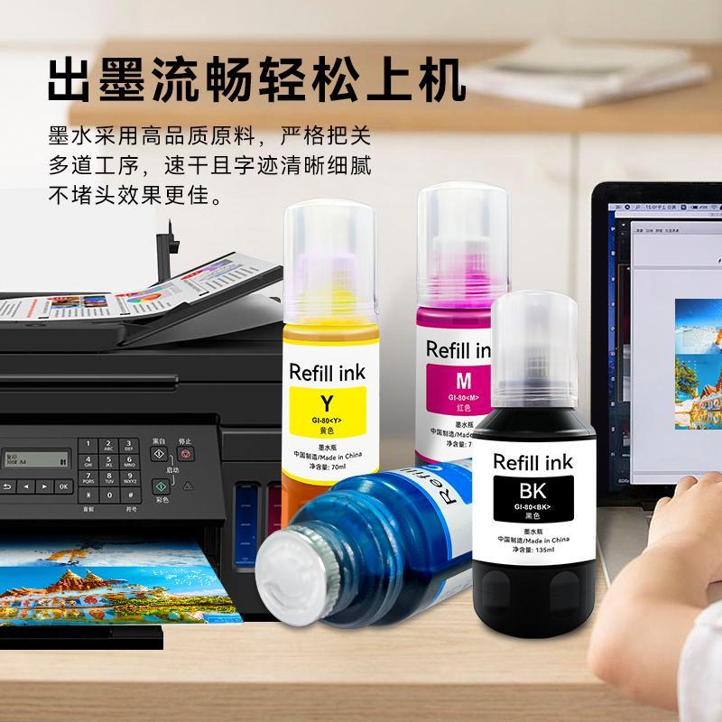 适用G5080 GM2080佳能打印机墨水GI-80彩色墨仓连供墨盒加墨墨汁