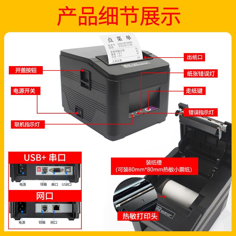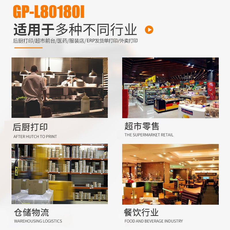 佳博GPL80180I热敏打印机超市便利店酒楼厨房餐饮菜单小票打印机